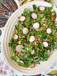 • Farro salad with snap peas and arugula