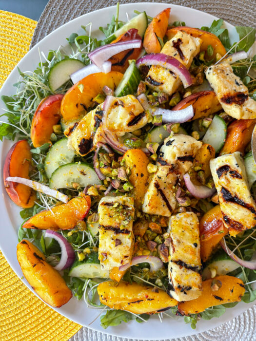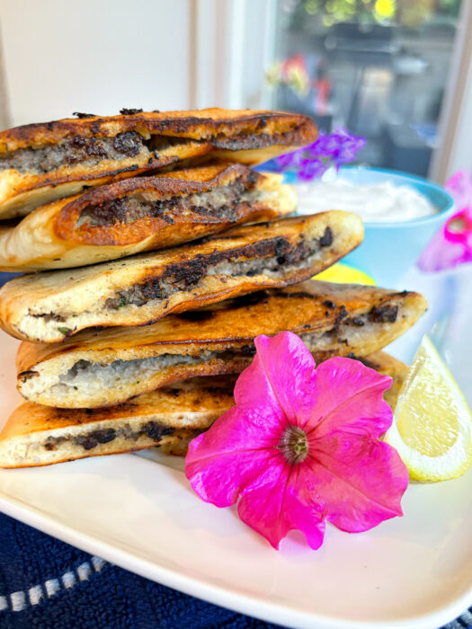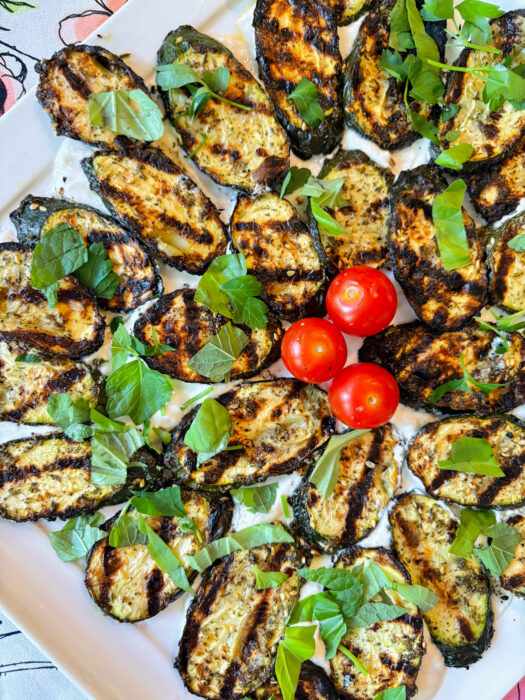- Grilled zucchini with zaatar and lemon served over a yogurt tahini sauce