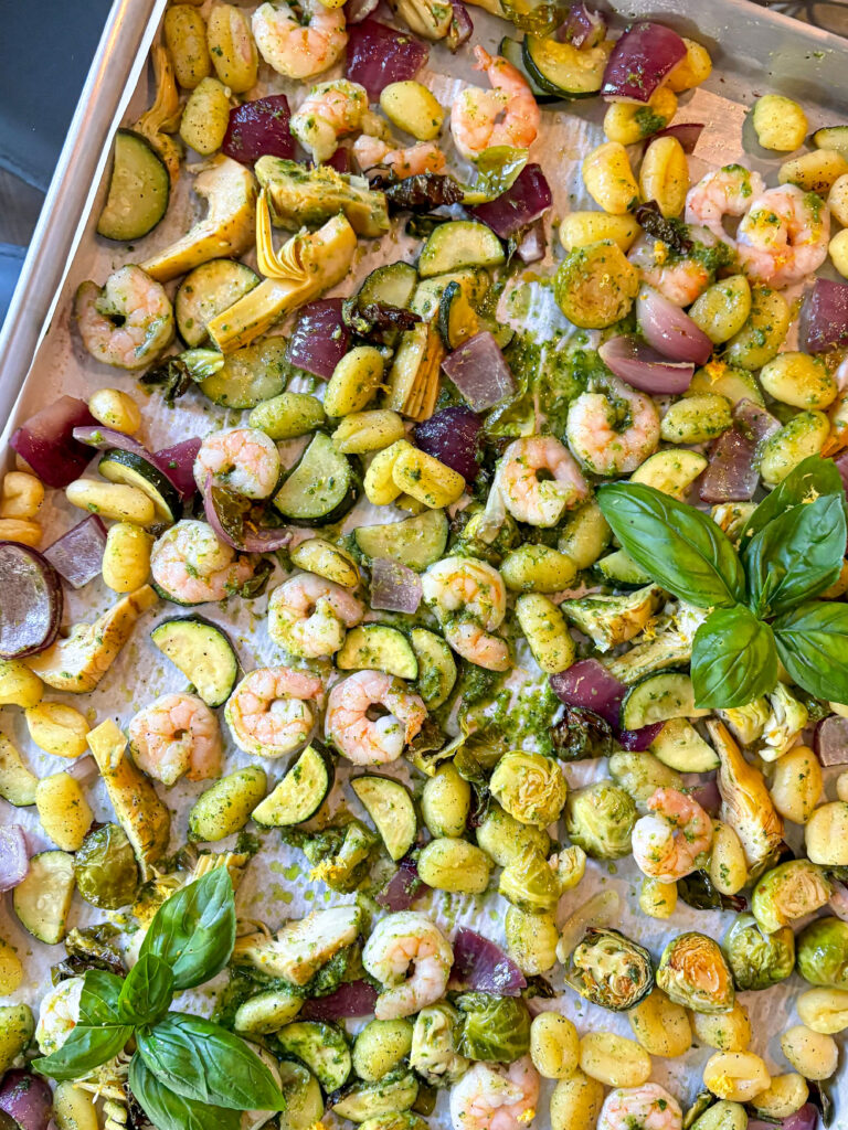 -Sheet pan gnocchi with shrimp and pesto